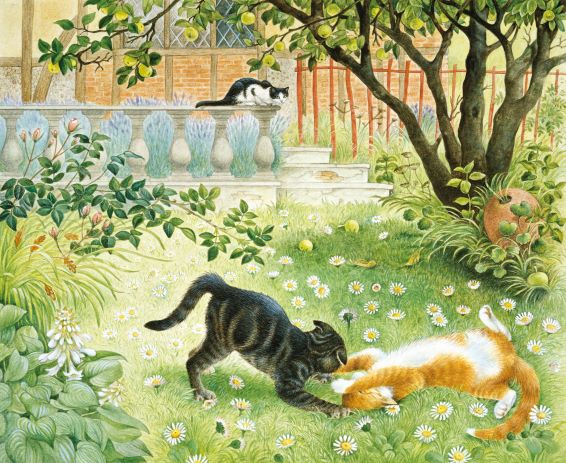 Cats Scrapping on a Daisy Lawn