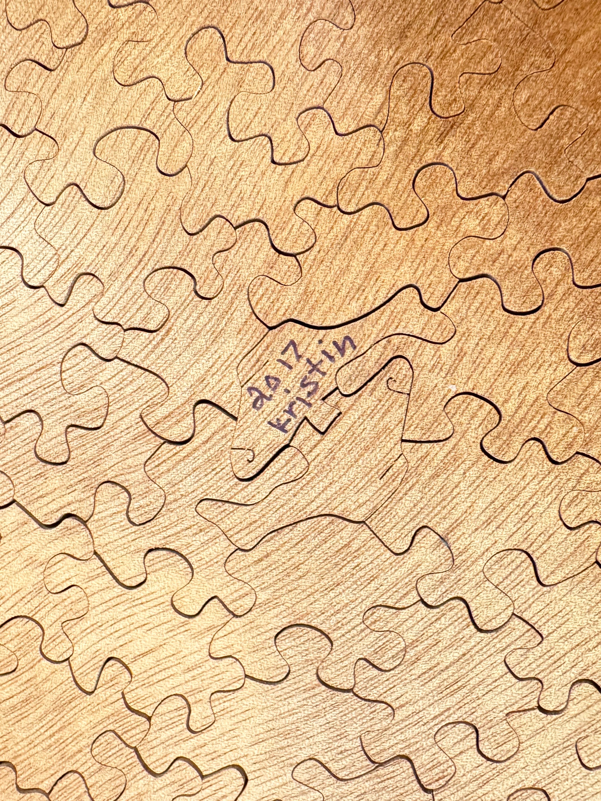 The puzzle was custom ordered and has no personalized pieces. It is in very good condition, and all pieces are present. The puzzle box is original with a label on one side.